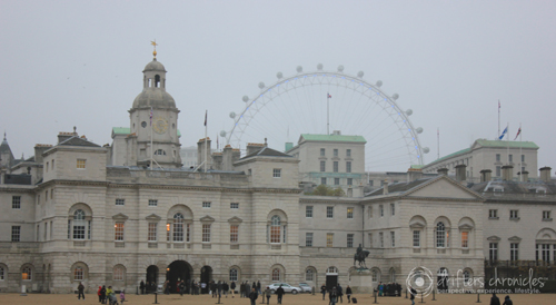 The London Eye, the giant Ferris wheel in the background. As the weather wasn’t particularly good that day we decided not to venture onto the London Eye.