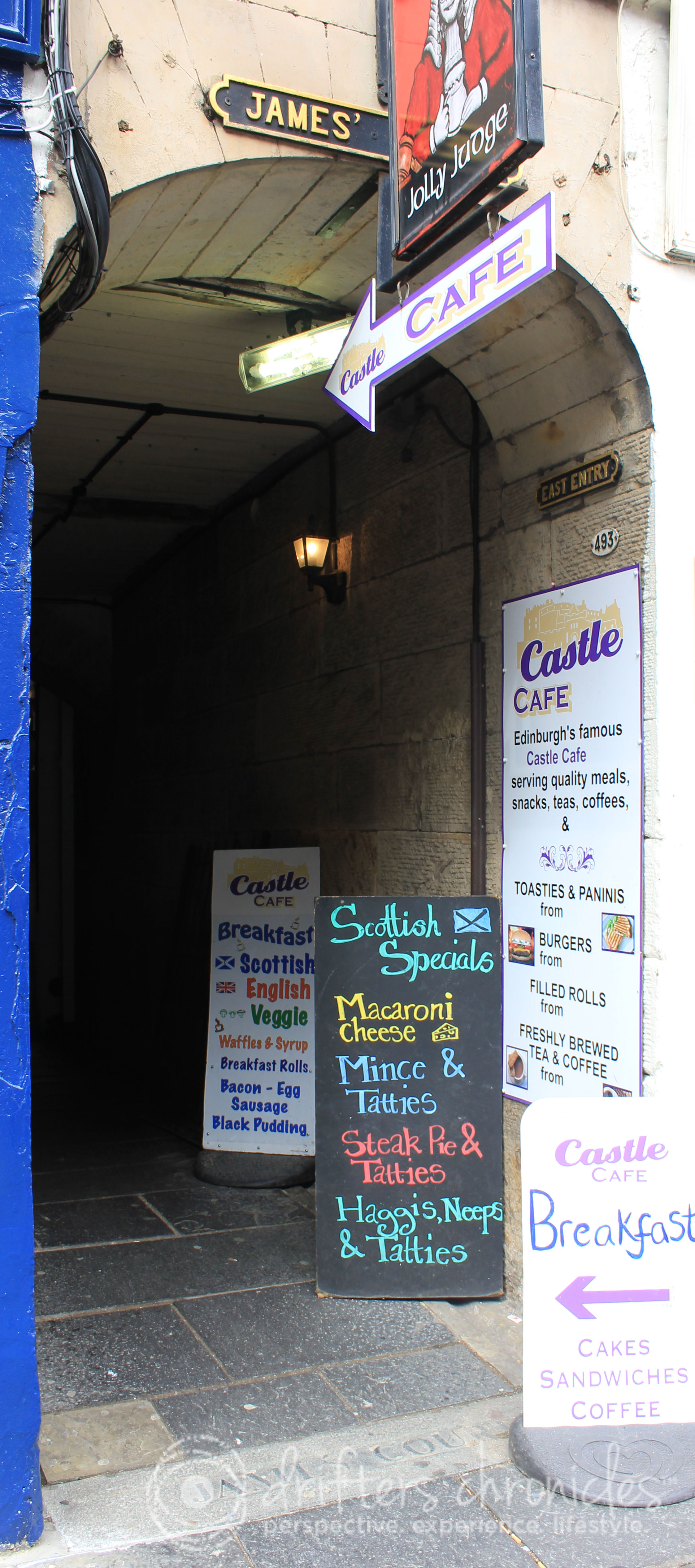 While walking along the beautiful Royal Mile in Edinburgh you will notice many openings between the many stores and restaurants.  It is very easy to be caught up in the action of the Royal Mile with the stunning Edinburgh Castle at the top.  But, part of travelling is to explore the not so common areas of the city.  Take a moment to peak or stroll down each alleyway.  You never know what you will find…